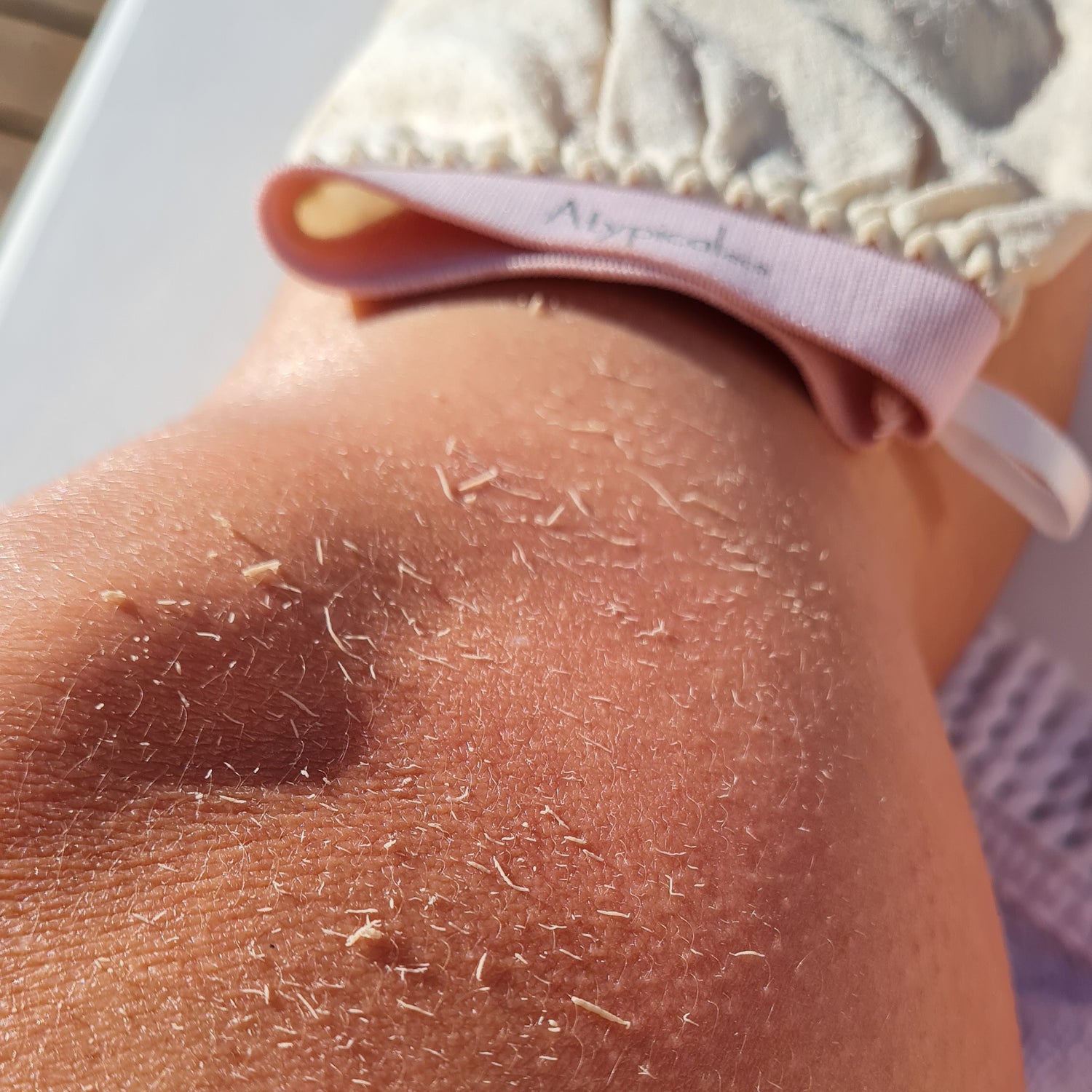 STEP 3 - Start exfoliating your body or face with firm pressure. It's normal if it gets a bit red.
